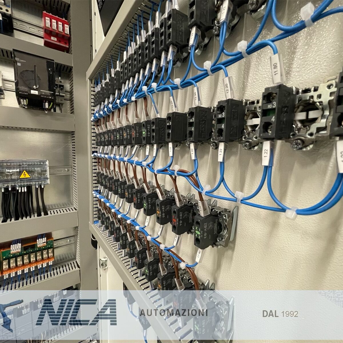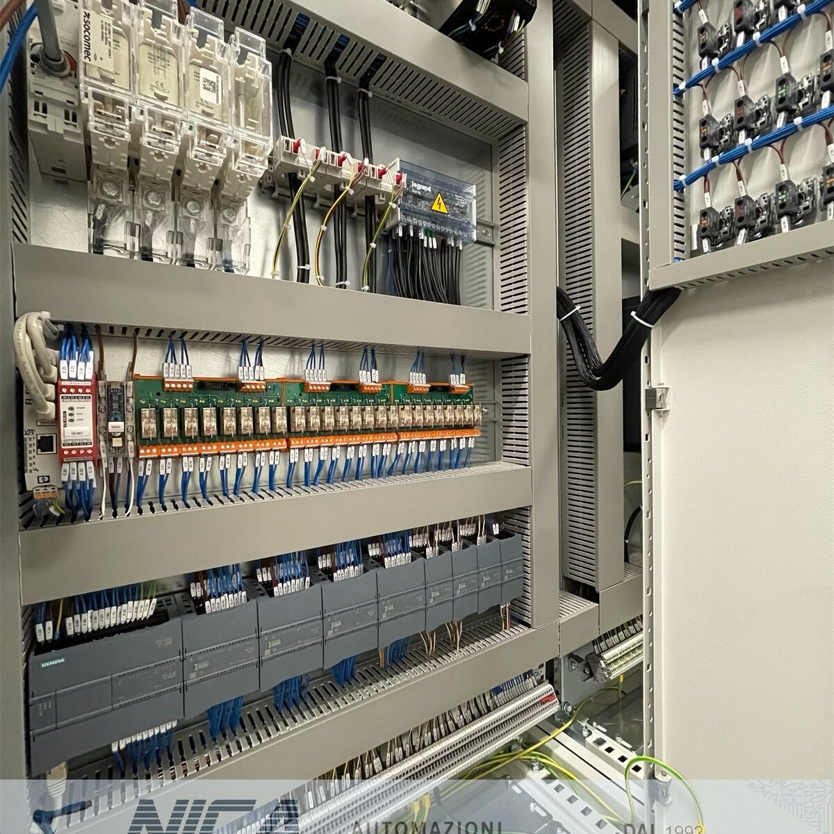 Quadro elettrico Con PLC Siemens programmato per comunicare con MES tramite OPC UA e messo in rete con mini PC visibile tramite TeamViewer.